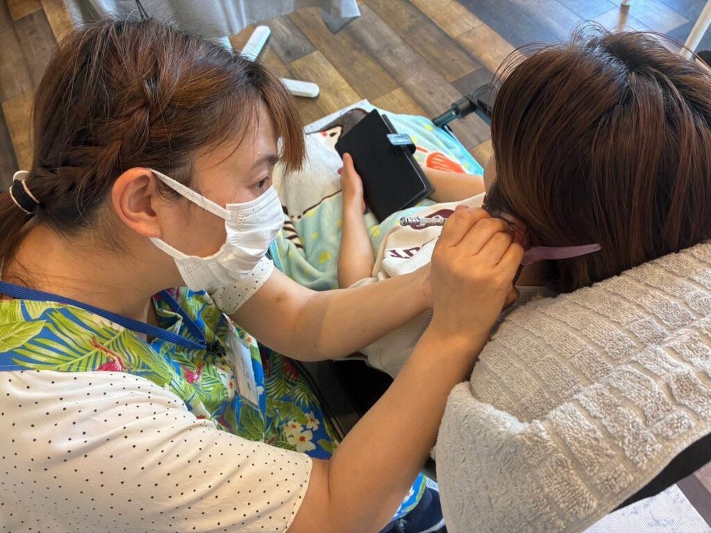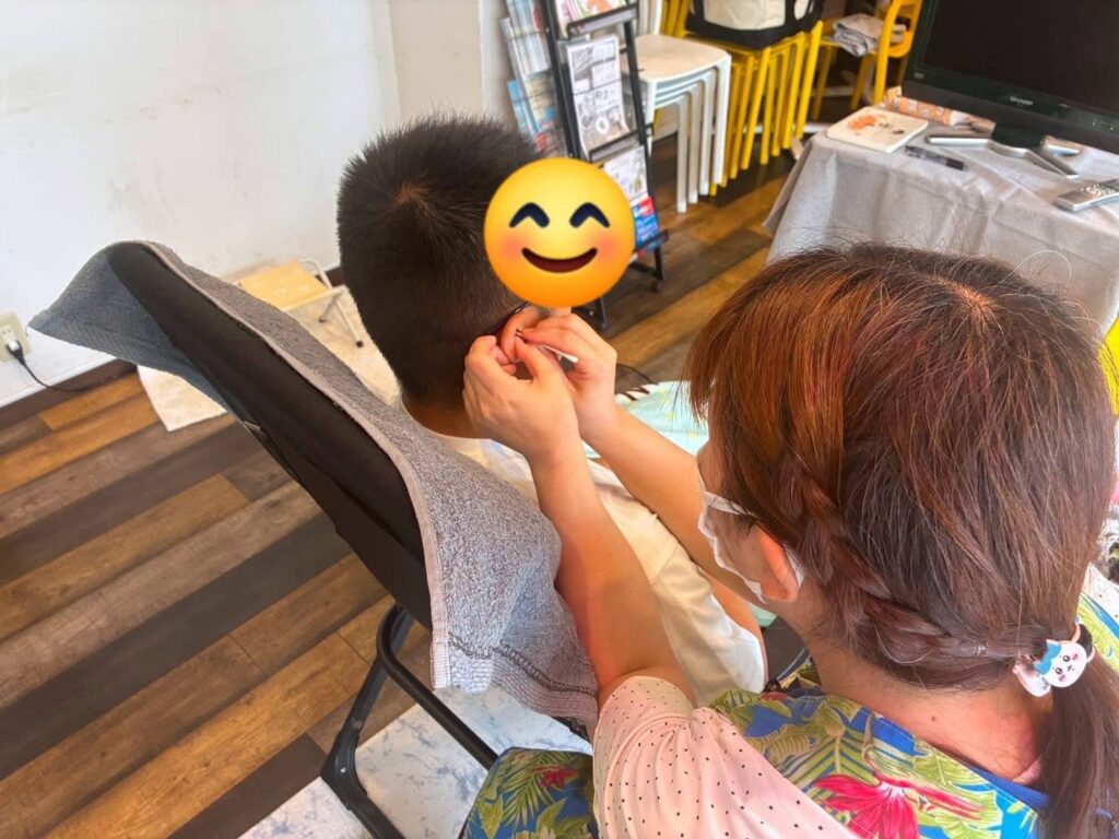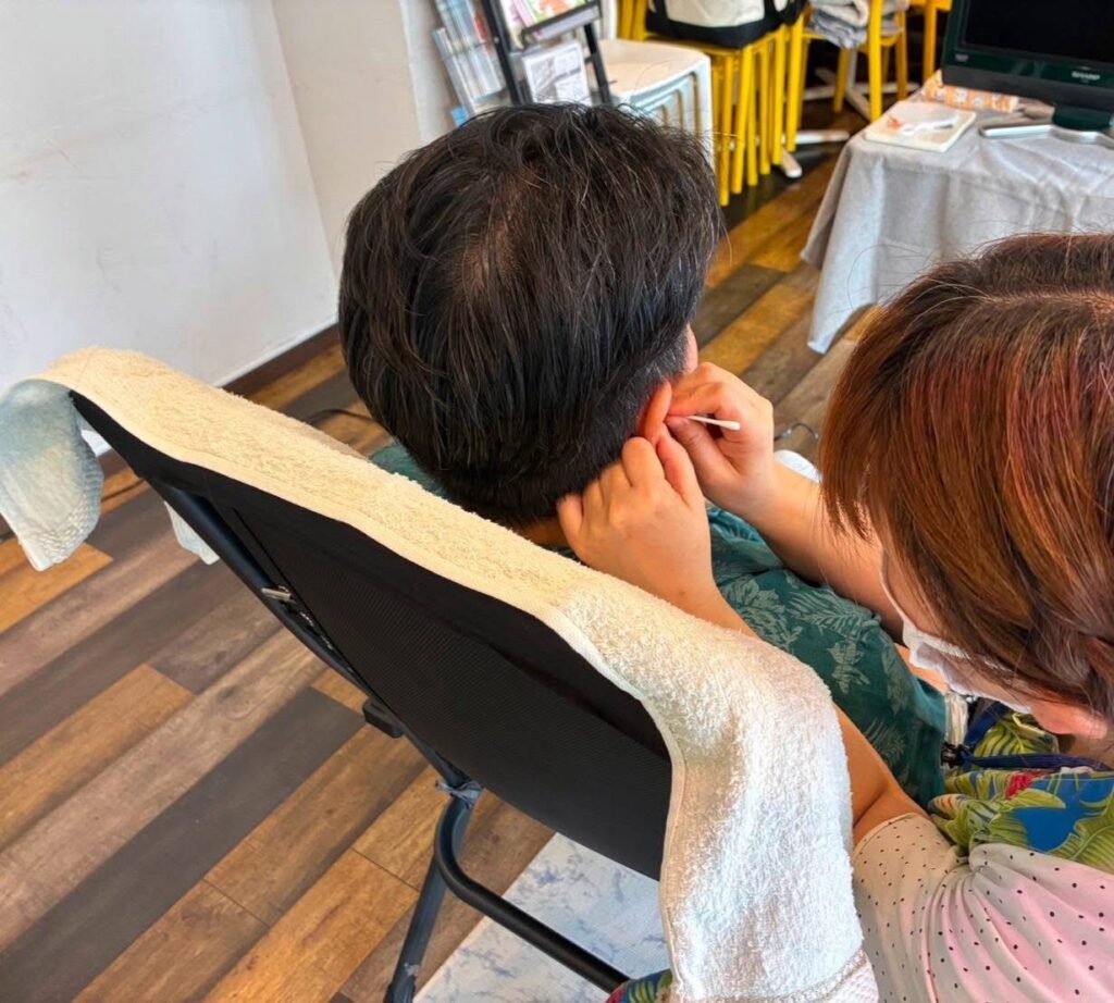 耳つぼシールは、男性にもおすすめで、今日は芝崎さんがキラキラを貼っていってくれて感動しました!もう一人の男性はお仕事上キラキラはつけられないとのことで、ジュエリーのないものを。しんちゃんはドライヘッドスパの途中で寝落ちしてそのまま30分くらい?寝てました(笑)耳を見たけど特に不調はなさそうなのでなんもしなかったです。