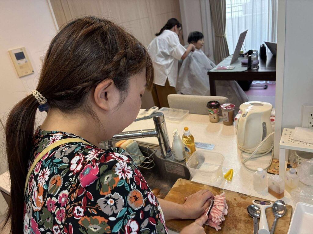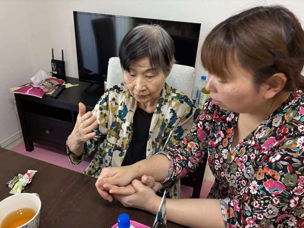 ②亜矢子さんがお母様の髪を切ってメイクをして