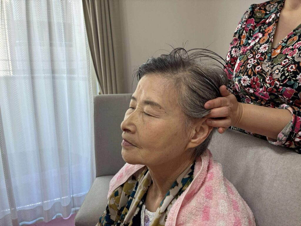 ③そのあとハンドケア、耳掃除、ドライヘッドスパ、肩と背中のケアをお話ししながら実施しました。