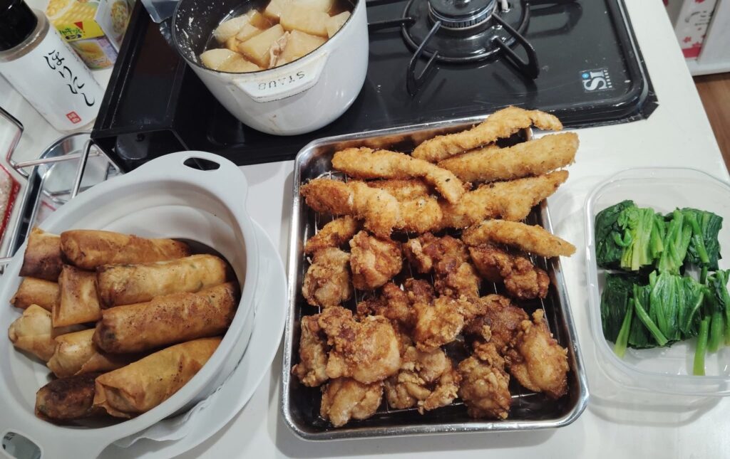 ②では揚げ物とリクエストがあり、唐揚げ、春巻、ささみフライを作りました。作ってて思ったけど、やっぱり私は揚げ物が得意✨